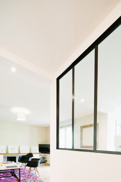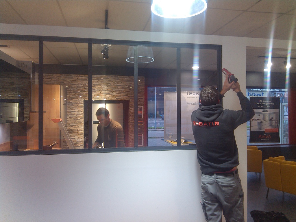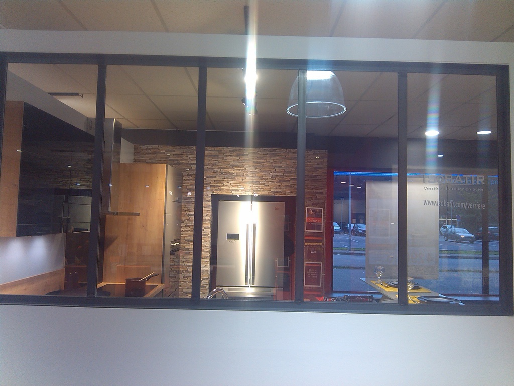 Réalisation unique de verrière d'intérieur en acier ou aluminium.